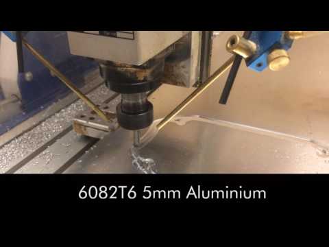A single fluted and dual fluted cutter suited to aluminium is shown below and have given excellent results during the machining of aluminium on the routers. Please have a look here here and here for examples of the systems machining aluminium.